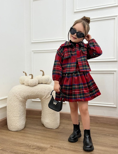 ست جلیقه دامن یقه اسکی جنس.پشمی درجه یک چهار خونه